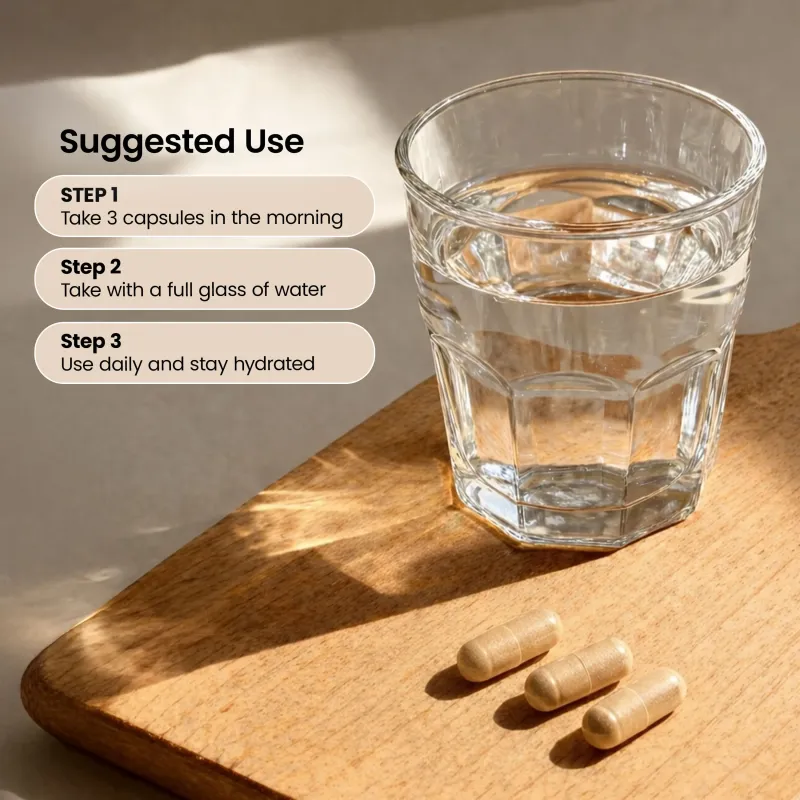 Suggested Usage: Take 3 capsules through the day with 12 fl oz of water or more each time.