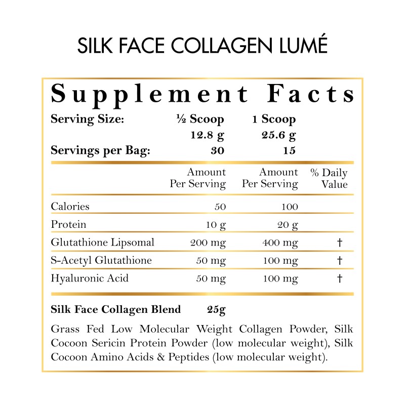 Silk Face Collagen Lumé – Collagen Powder with Glutathione; Hyaluronic Acid – Supports Skin Elasticity, Hydration; Radiance - Beauty; Wellness Supplement – 20g Protein per Serving – 12.35 oz (350g) – by Cocó March