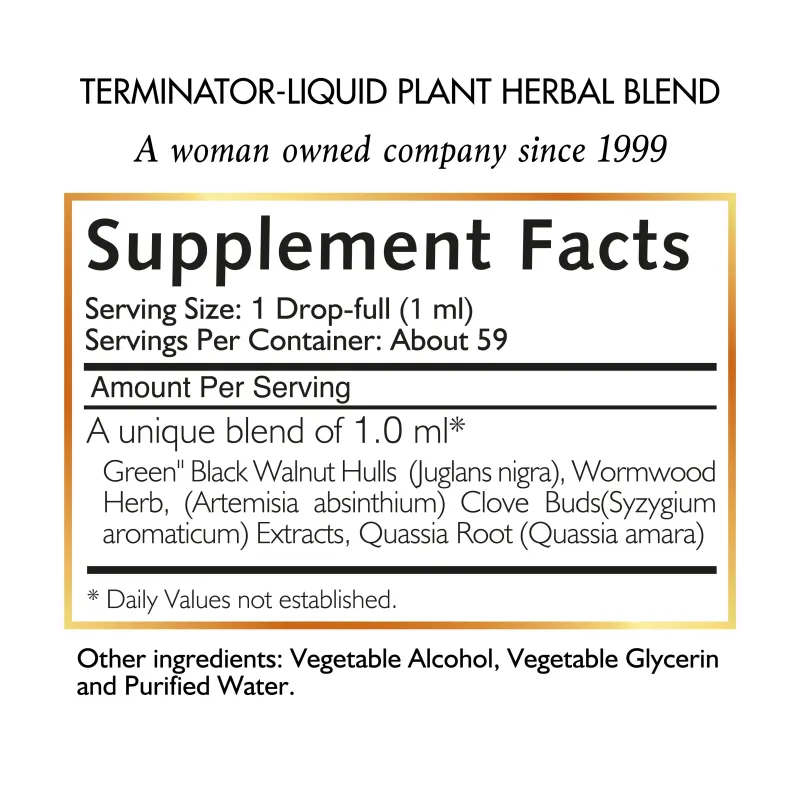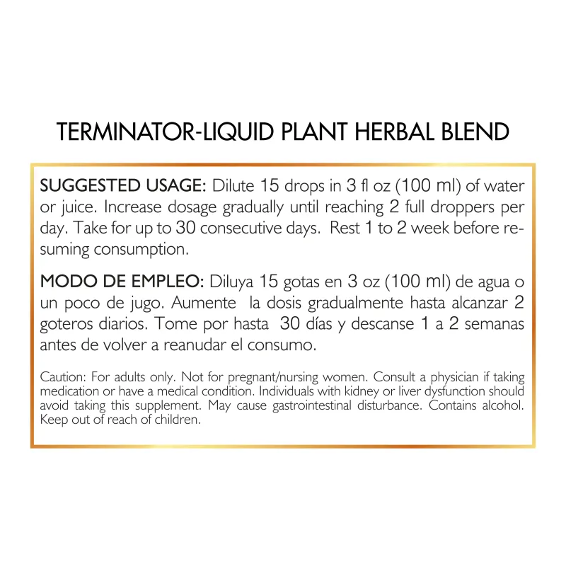 Terminator Liquid Plant Herbal Blend De Cocó March - Mezcla Herbal Líquida Para La Limpieza De Parásitos - Apoya La Salud Intestinal - Ayuda A Mantener El Equilibrio De Patógenos Amigables En El Intestino. Sin Gluten, Sin Lácteos, Vegano, Apto Para Dieta Keto, Sin OGM - 2 fl oz (59 ml).