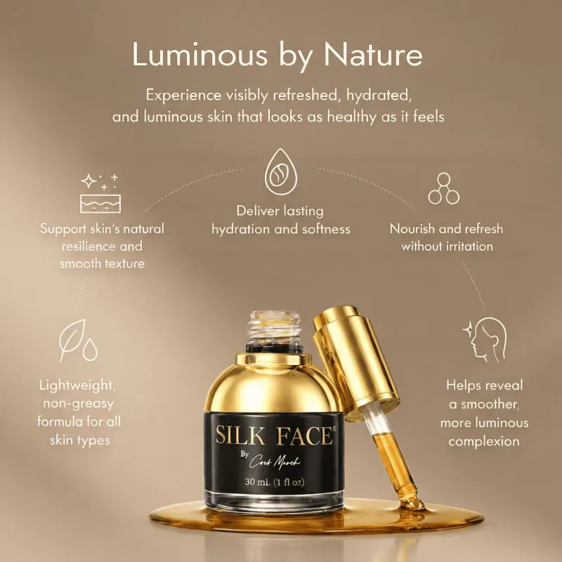 Silk Face® Serum - Extractos De Seda Pura - Iluminación Lujosa Y Resultados Inmediatos - Reduce Rápidamente Las Líneas Finas - Unifica El Tono De La Piel - 100% Natural E Hipoalergénico - 1 fl oz (30 ml) - Elixir De Cocó March.